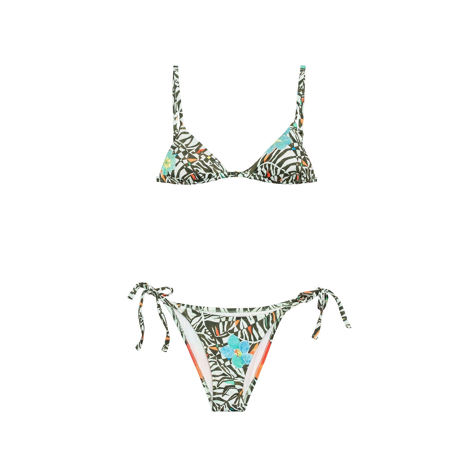 Üçgen bikini altı. Yanlardan bağlanarak ayarlanabilir. Yan bağcıklarının takıldığı yerde altın renkli halka şeklinde metal aksesuarı bulunmaktadır. Orta derece kapalılık sağlar.