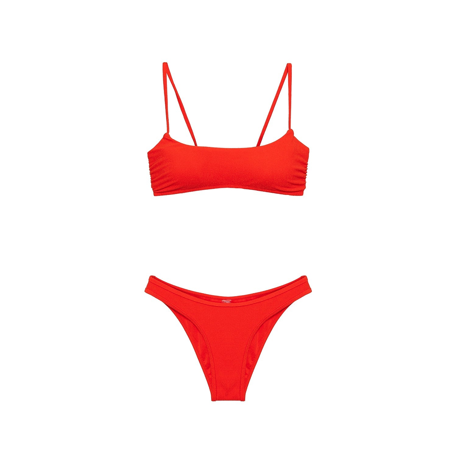 Sports bra görünümüyle atletik bir stil. Derin yuvarlak yakasıyla hatları ortaya çıkarırken destek de sağlar. Ayarlanabilir sırt ve omuz askıları. Askılar ister düz ister çarpraz bağlanabilir. Çıkarılabilir göğüs kapları. Havlu dokulu kumaş.